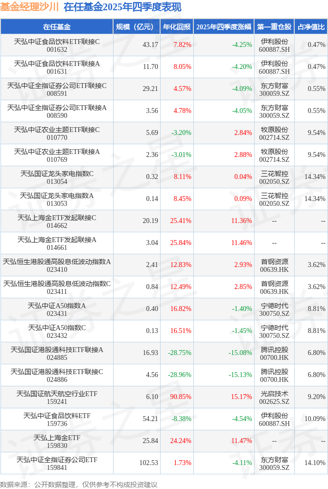 证券之星消息,日前天弘中证全指证券公司ETF基金公布四季报,2025年四季度最新规模102.53亿元,季度净值涨幅为-4.11%。