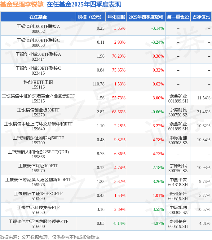 证券之星消息,日前工银瑞信中证消费服务领先ETF基金公布四季报,2025年四季度最新规模0.83亿元,季度净值涨幅为-4.97%。