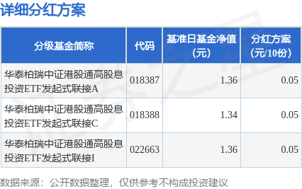 证券之星消息,1月28日发布《华泰柏瑞中证港股通高股息投资交易型开放式指数证券投资基金发起式联接基金分红公告》。2026年度第一次分红。公告显示,本次分红的收益分配基准日为12月12日,详细分红方案如下: