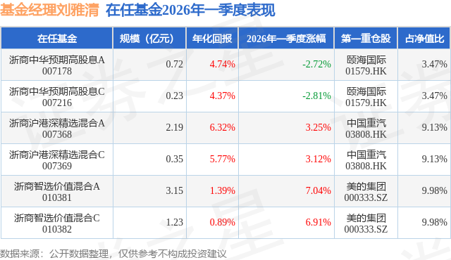 证券之星消息,日前浙商智选价值混合A基金公布一季报,2026年一季度最新规模3.15亿元,季度净值涨幅为7.04%。