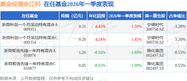 证券之星消息,日前浙商智选先锋一年持有混合C基金公布一季报,2026年一季度最新规模0.05亿元,季度净值涨幅为-1.99%。