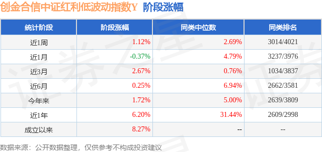 证券之星消息,日前创金合信中证红利低波动指数Y基金公布一季报,2026年一季度最新规模1.8亿元,季度净值涨幅为2.16%。