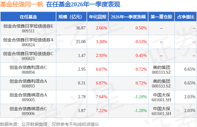 证券之星消息,日前创金合信鑫利混合A基金公布一季报,2026年一季度最新规模0.31亿元,季度净值涨幅为0.72%。