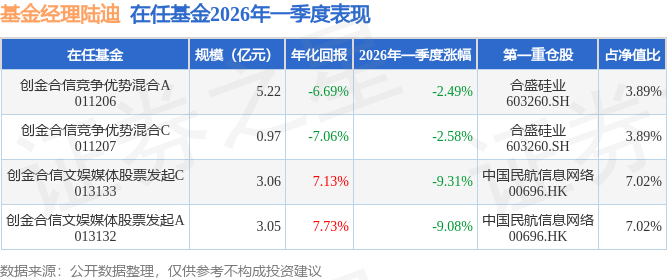 证券之星消息,日前创金合信竞争优势混合C基金公布一季报,2026年一季度最新规模0.97亿元,季度净值涨幅为-2.58%。
