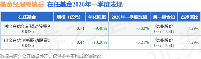 证券之星消息,日前创金合信创新驱动股票A基金公布一季报,2026年一季度最新规模0.71亿元,季度净值涨幅为-6.02%。