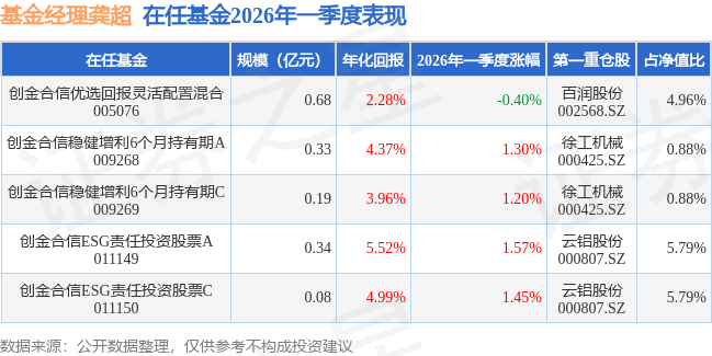 证券之星消息,日前创金合信稳健增利6个月持有期C基金公布一季报,2026年一季度最新规模0.19亿元,季度净值涨幅为1.2%。