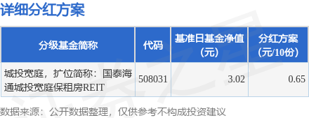 证券之星消息,4月22日发布《国泰海通城投宽庭保障性租赁住房封闭式基础设施证券投资基金收益分配的公告》。本次分红为2025年度第2次分红。公告显示,本次分红的收益分配基准日为12月12日,详细分红方案如下: