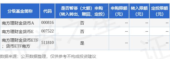 注:南方理财金货币ETF的申赎简称为:理财金H,申购和赎回代码为:511810。