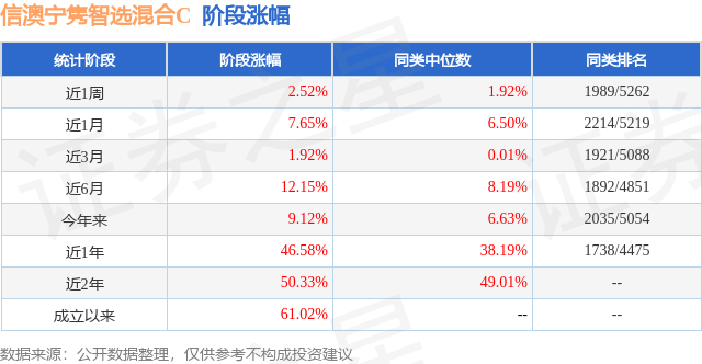 从业绩表现来看,信澳宁隽智选混合C基金过去一年净值涨幅为46.58%,在同类基金中排名1738/4475,同类基金过去一年净值涨幅中位数为38.19%。而基金过去一年的最大回撤为-10.53%,成立以来的最大回撤为-16.31%。