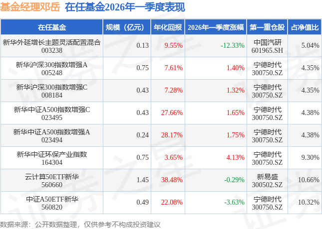 证券之星消息,日前新华外延增长主题灵活配置混合基金公布一季报,2026年一季度最新规模0.13亿元,季度净值涨幅为-12.33%。