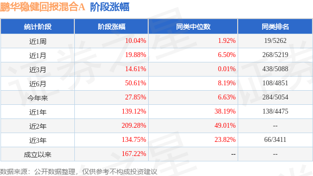 从业绩表现来看,鹏华稳健回报混合A基金过去一年净值涨幅为139.12%,在同类基金中排名138/4475,同类基金过去一年净值涨幅中位数为38.19%。而基金过去一年的最大回撤为-13.33%,成立以来的最大回撤为-52.06%。
