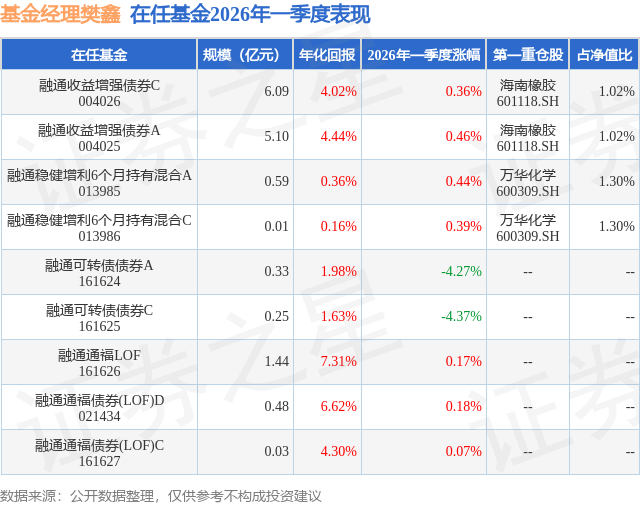 证券之星消息,日前融通收益增强债券C基金公布一季报,2026年一季度最新规模6.09亿元,季度净值涨幅为0.36%。