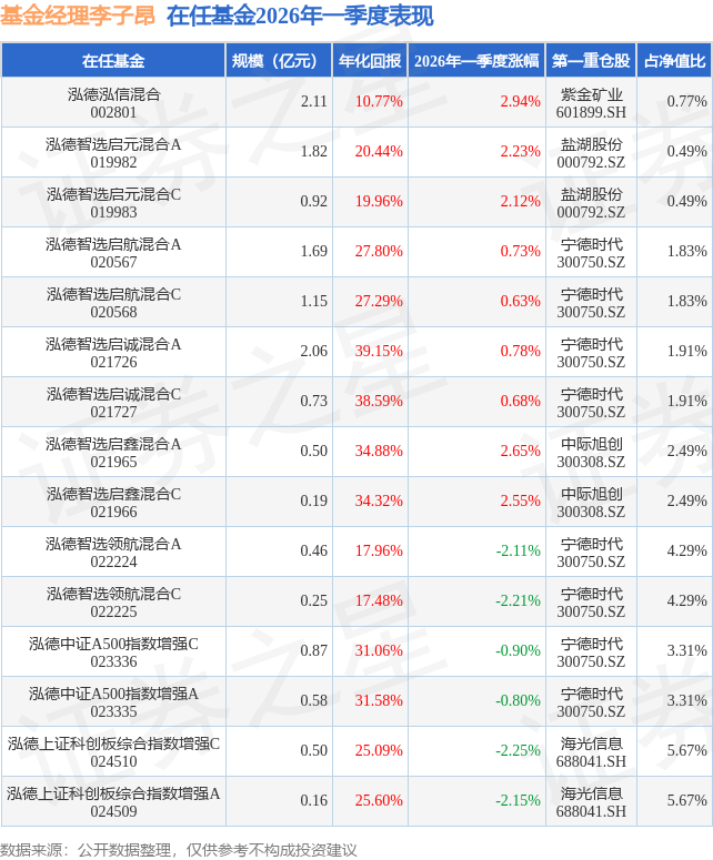 证券之星消息,日前泓德泓信混合基金公布一季报,2026年一季度最新规模2.11亿元,季度净值涨幅为2.94%。
