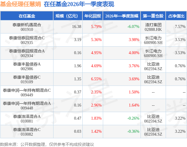 证券之星消息,日前泰康恒泰回报混合C基金公布一季报,2026年一季度最新规模3.19亿元,季度净值涨幅为3.98%。