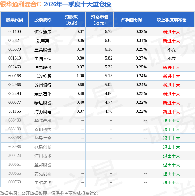 证券之星消息,日前银华通利混合C基金公布一季报,2026年一季度最新规模0.08亿元,季度净值涨幅为0.52%。