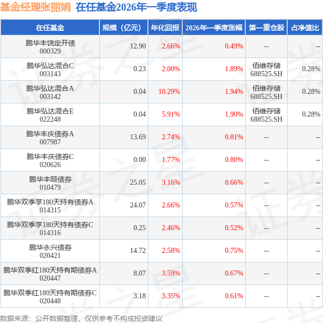 证券之星消息,日前鹏华弘达混合A基金公布一季报,2026年一季度最新规模0.04亿元,季度净值涨幅为1.94%。