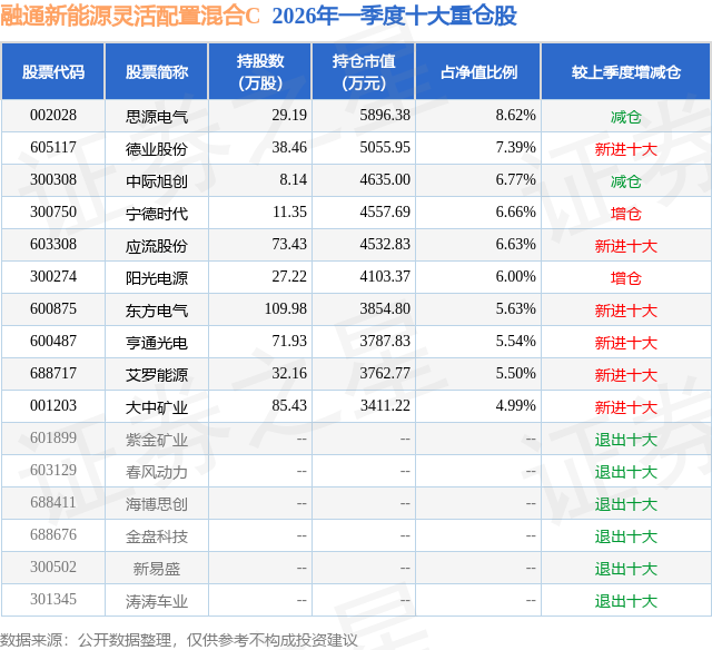 证券之星消息,日前融通新能源灵活配置混合C基金公布一季报,2026年一季度最新规模1.76亿元,季度净值涨幅为-0.33%。