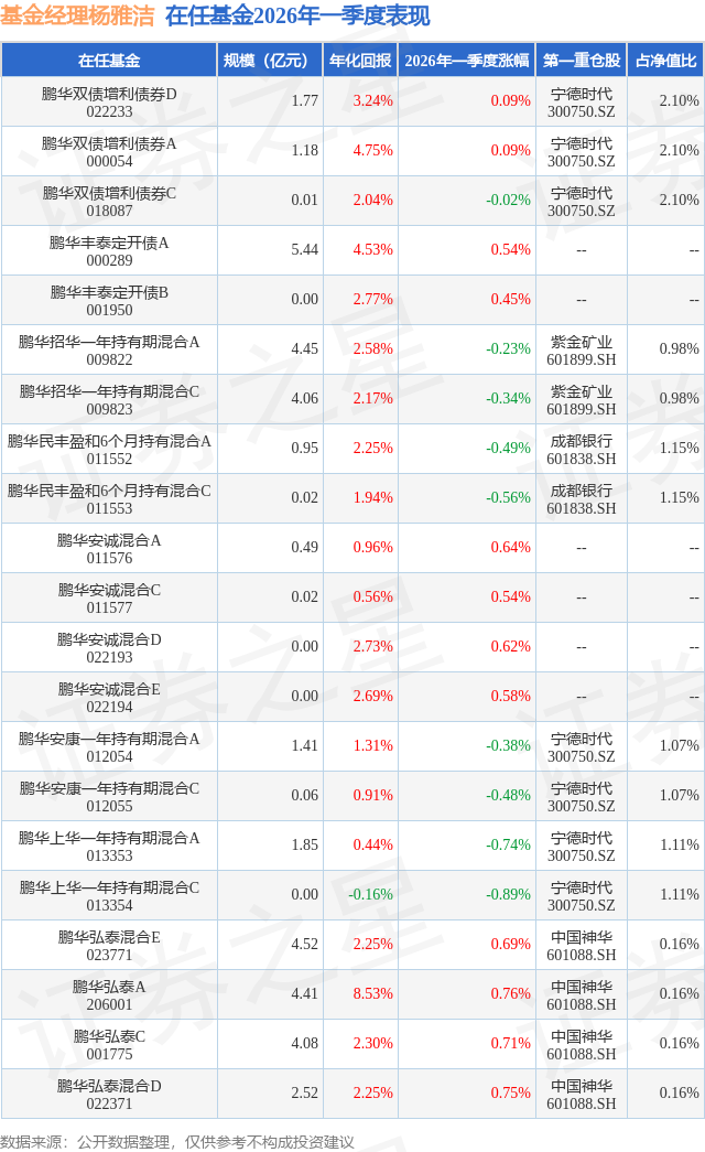 证券之星消息,日前鹏华民丰盈和6个月持有混合C基金公布一季报,2026年一季度最新规模0.02亿元,季度净值涨幅为-0.56%。