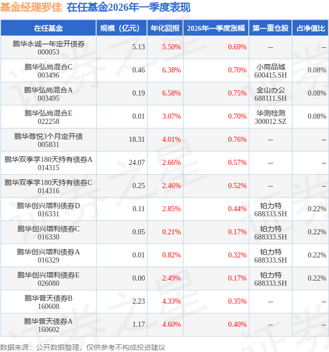 证券之星消息,日前鹏华弘尚混合C基金公布一季报,2026年一季度最新规模0.46亿元,季度净值涨幅为0.7%。