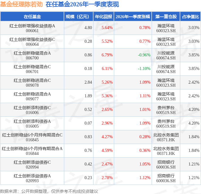 证券之星消息,日前红土创新添利债券C基金公布一季报,2026年一季度最新规模0.52亿元,季度净值涨幅为1.01%。