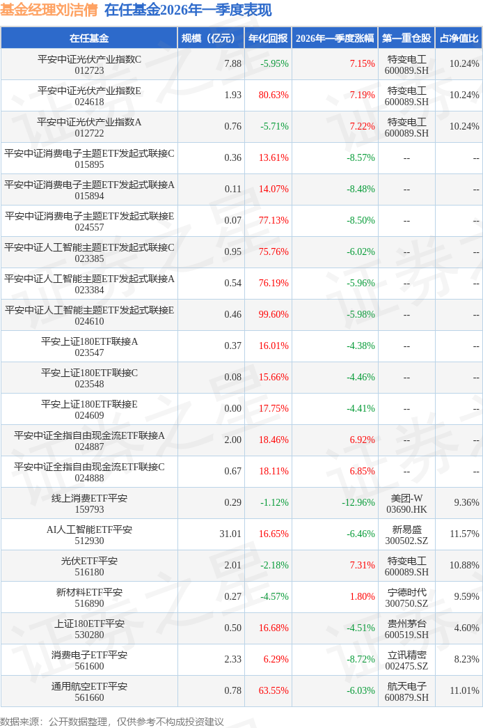 AI人工智能ETF平安现任基金经理为刘洁倩。其中在任基金经理刘洁倩已从业6年又196天,2023年4月6日正式接手管理AI人工智能ETF平安,任职期间累计回报为70.43%。目前还管理着21只基金产品(包括A类和C类),其中本季度表现最佳的基金为光伏ETF平安(516180),季度净值涨幅为7.31%。