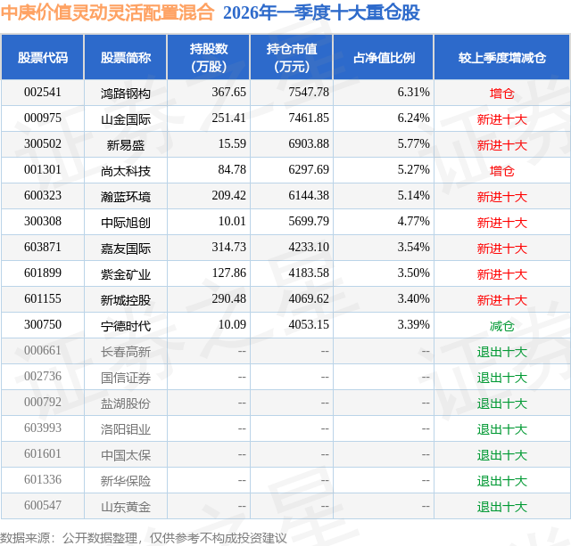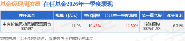 证券之星消息,日前中庚价值灵动灵活配置混合基金公布一季报,2026年一季度最新规模11.96亿元,季度净值涨幅为11.5%。