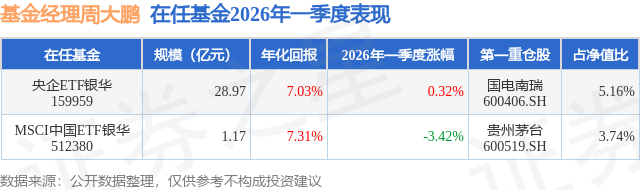 证券之星消息,日前MSCI中国ETF银华基金公布一季报,2026年一季度最新规模1.17亿元,季度净值涨幅为-3.42%。