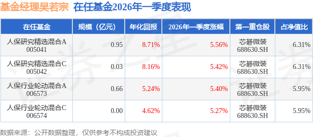 人保行业轮动混合C现任基金经理为吴若宗,本季度增聘基金经理吴若宗,近期离任的基金经理为杨坤、刘石开。其中在任基金经理吴若宗已从业3年又116天,2026年1月5日正式接手管理人保行业轮动混合C,任职期间累计回报为20.18%。目前还管理着4只基金产品(包括A类和C类),其中本季度表现最佳的基金为人保研究精选混合A(005041),季度净值涨幅为5.56%。