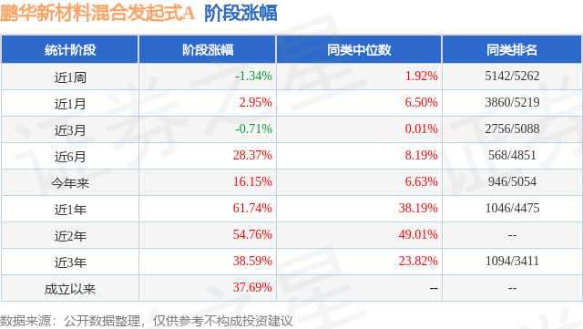从业绩表现来看,鹏华新材料混合发起式A基金过去一年净值涨幅为61.74%,在同类基金中排名1046/4475,同类基金过去一年净值涨幅中位数为38.19%。而基金过去一年的最大回撤为-12.51%,成立以来的最大回撤为-31.31%。