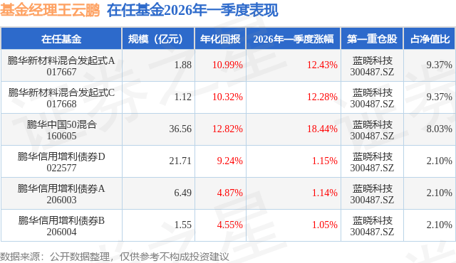 证券之星消息,日前鹏华新材料混合发起式A基金公布一季报,2026年一季度最新规模1.88亿元,季度净值涨幅为12.43%。