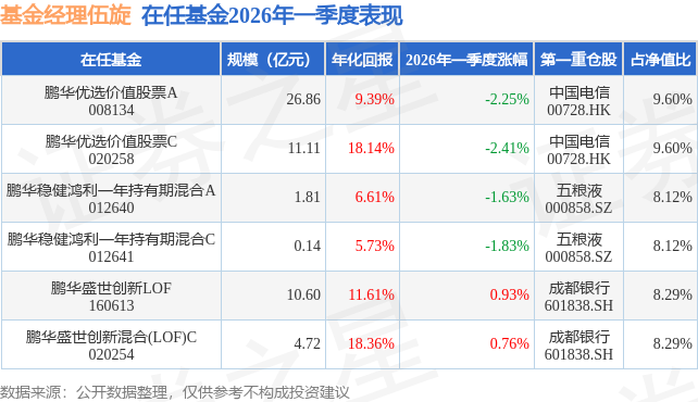 从基金规模来看,鹏华优选价值股票A基金2026年一季度公布的基金规模为26.86亿元,较上一期规模24.62亿元变化了2.24亿元,环比变化了9.12%。该基金最新一期资产配置为:股票占净值比94.78%,无债券类资产,现金占净值比5.26%。从基金持仓来看,该基金当季前十大股票仓位达55.12%,第一大重仓股为中国电信(00728),持仓占比为9.6%。