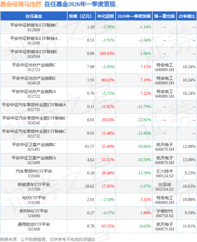 证券之星消息,日前新能源车ETF平安基金公布一季报,2026年一季度最新规模18.62亿元,季度净值涨幅为-1.07%。
