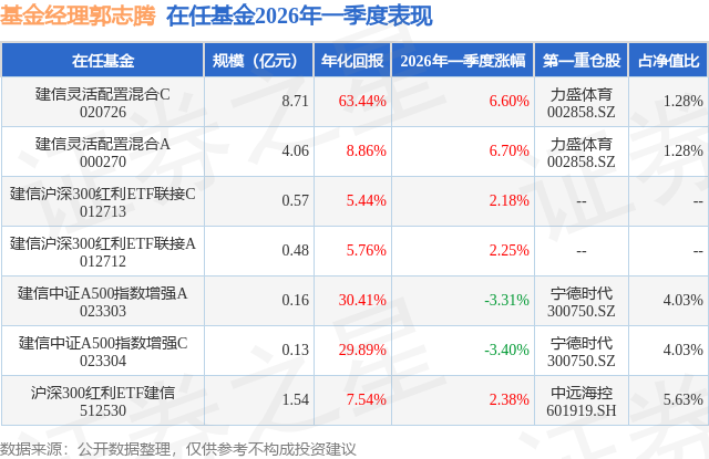 证券之星消息,日前沪深300红利ETF建信基金公布一季报,2026年一季度最新规模1.54亿元,季度净值涨幅为2.38%。