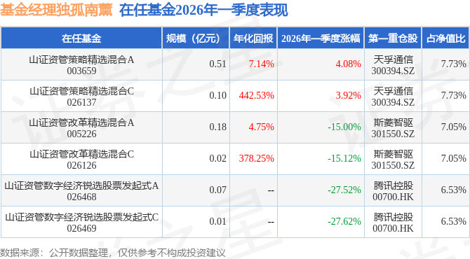 证券之星消息,日前山证资管改革精选混合A基金公布一季报,2026年一季度最新规模0.18亿元,季度净值涨幅为-15.0%。