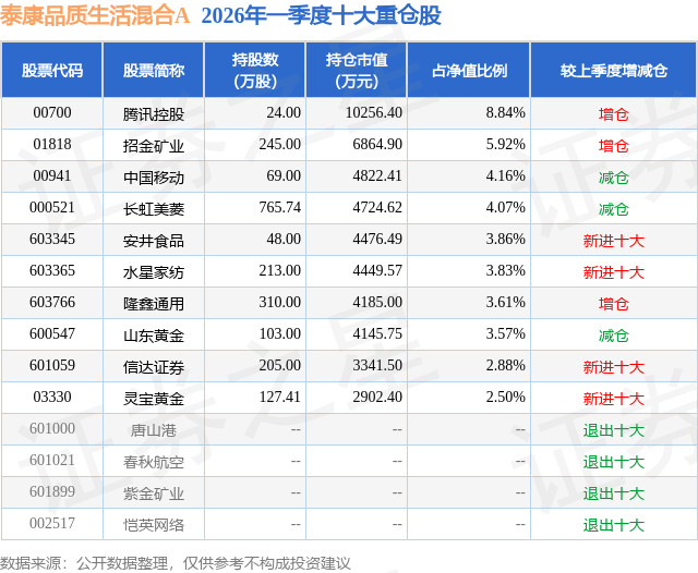 证券之星消息,日前泰康品质生活混合A基金公布一季报,2026年一季度最新规模9.09亿元,季度净值涨幅为-3.82%。