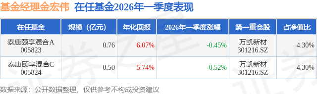 证券之星消息,日前泰康颐享混合A基金公布一季报,2026年一季度最新规模0.76亿元,季度净值涨幅为-0.45%。