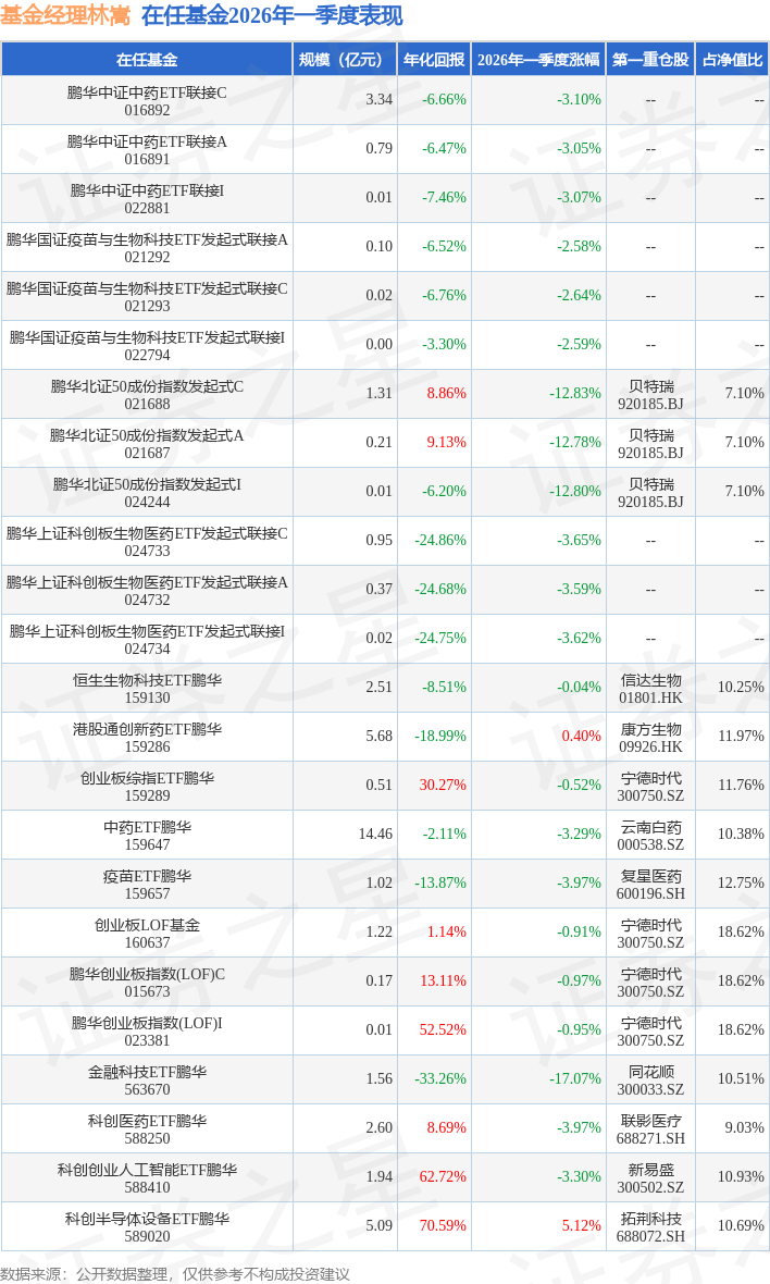 证券之星消息,日前疫苗ETF鹏华基金公布一季报,2026年一季度最新规模1.02亿元,季度净值涨幅为-3.97%。