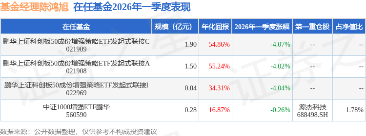 证券之星消息,日前中证1000增强ETF鹏华基金公布一季报,2026年一季度最新规模0.28亿元,季度净值涨幅为-0.26%。