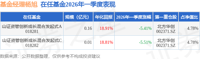 证券之星消息,日前山证资管创新成长混合发起式A基金公布一季报,2026年一季度最新规模0.16亿元,季度净值涨幅为-5.41%。