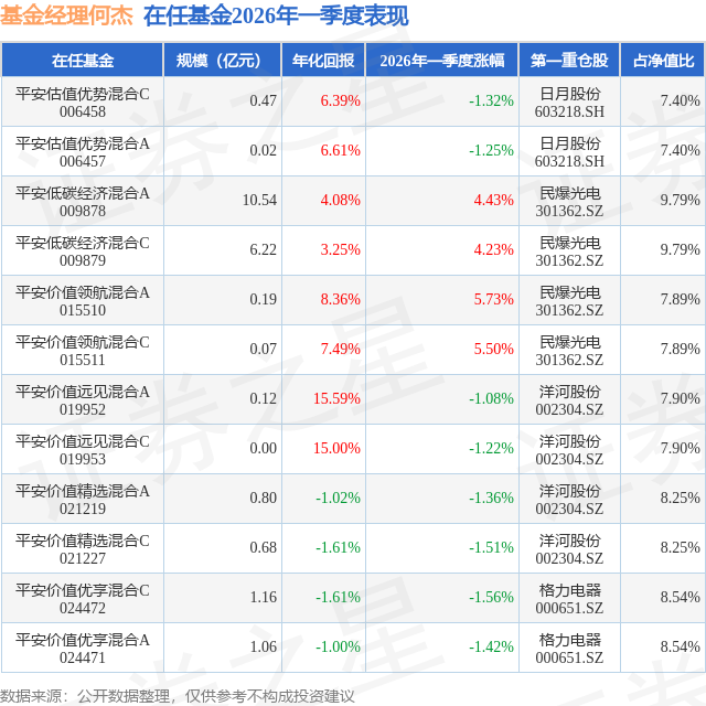 证券之星消息,日前平安估值优势混合A基金公布一季报,2026年一季度最新规模0.02亿元,季度净值涨幅为-1.25%。