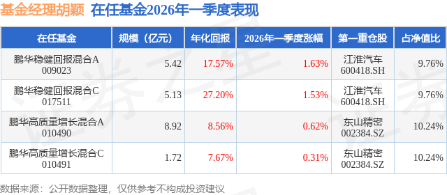 证券之星消息,日前鹏华高质量增长混合C基金公布一季报,2026年一季度最新规模1.72亿元,季度净值涨幅为0.31%。