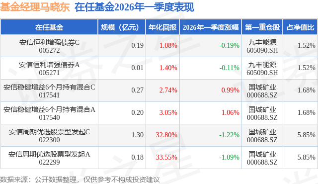 证券之星消息,日前安信恒利增强债券C基金公布一季报,2026年一季度最新规模0.19亿元,季度净值涨幅为-0.19%。