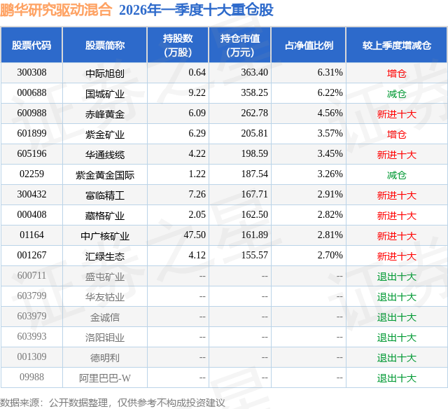 对本季度基金运作,基金经理的观点如下:一季度,组合波动较大,原因之一在于年初有色急涨后,因对联储新人选主张的顾虑经历了快速的“流动性”预期反转,金银及工业品显著调整。随后,美伊冲突升级,油价快速上涨,引起“衰退”和“加息”顾虑,市场经历普跌。本组合一直对资源加科技保持相对积极的观点,周期成长的属性对流动性相对敏感,有一定波动。组合在一季度对空间展望缺乏强劲支持、风偏依赖高的方向做了优化,同时聚焦于中线仍然具备强产业进度支持的方向。展望二季度,我们依然保持周期+成长的框架性看好。战争终会过去,扰动逐步会钝化,我们认为前期对于衰退和流动性紧缩预期演绎充分,后续会迎来积极修复。其中我们仍然对资源品,尤其是对贵金属和新能源材料保持积极的态度,也保持了积极的仓位。我们认为当下乱世对抗和多国债务高增的环境下,黄金的中线逻辑依然存在,而全年维度看我们认为很难支持加息,部分相对优质的黄金股已经调整至有吸引力的状态。我们组合中前几个季度也一直强调对于新能源材料的关注,我们认为供给干扰度大,需求因储能、电车出口等新要素有积极展望,我们保持对相关品种价格的中线看好。对于部分工业品而言,虽然行业面临需求预期的压制,但部分标的具备个体的成长性,若预期修复将爆发出更大弹性,我们对部分具备成长性的标的保持积极关注。组合另一方面亦持续关注AI的进展,尤其以算力和存储链条为重点关注环节,token消耗持续在提升、openclaw的渗透也在加强,产业仍在在正向的推进,值得参与。本组合将继续以相对中线的产业周期为核心,积极筛选未来向上的产业对其中优秀的公司进行布局。