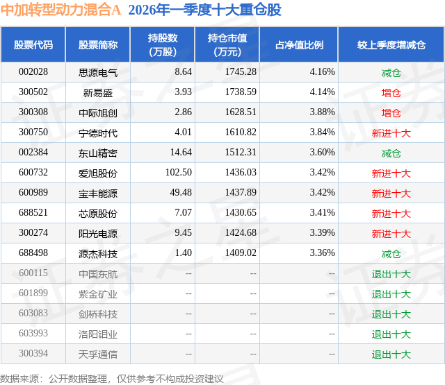 证券之星消息,日前中加转型动力混合A基金公布一季报,2026年一季度最新规模1.49亿元,季度净值涨幅为1.54%。