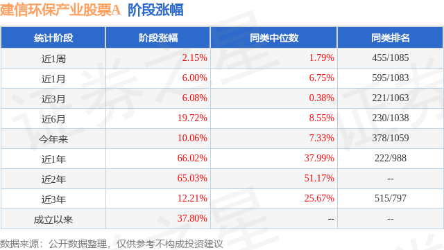从业绩表现来看,建信环保产业股票A基金过去一年净值涨幅为66.02%,在同类基金中排名222/988,同类基金过去一年净值涨幅中位数为37.99%。而基金过去一年的最大回撤为-10.6%,成立以来的最大回撤为-59.97%。