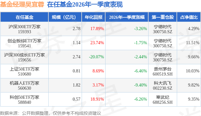 证券之星消息,日前上证50ETF万家基金公布一季报,2026年一季度最新规模0.81亿元,季度净值涨幅为-6.46%。