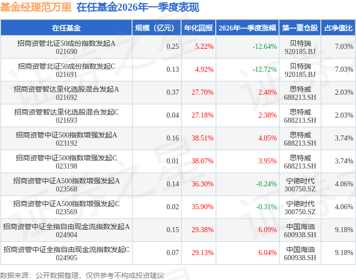 证券之星消息,日前招商资管智达量化选股混合发起A基金公布一季报,2026年一季度最新规模0.37亿元,季度净值涨幅为2.48%。