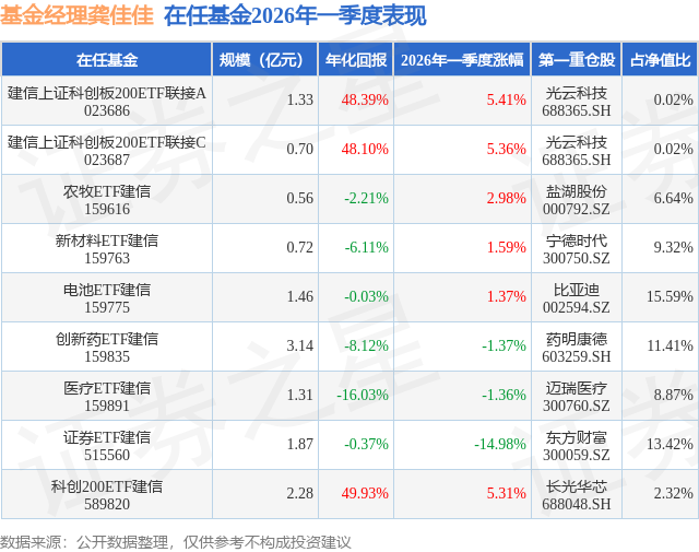 证券之星消息,日前电池ETF建信基金公布一季报,2026年一季度最新规模1.46亿元,季度净值涨幅为1.37%。