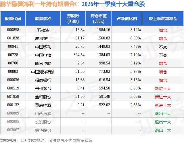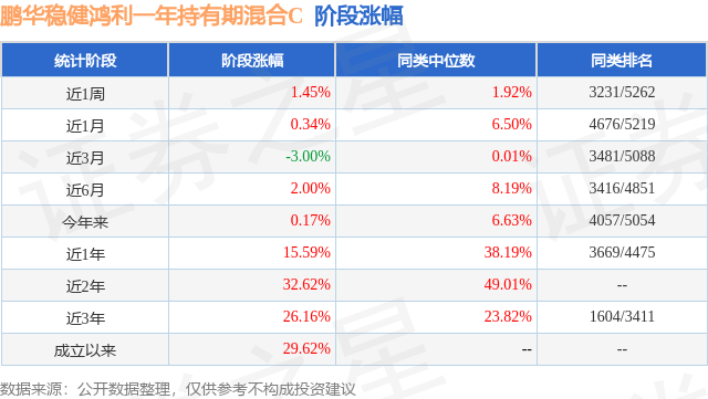 证券之星消息,日前鹏华稳健鸿利一年持有期混合C基金公布一季报,2026年一季度最新规模0.14亿元,季度净值涨幅为-1.83%。