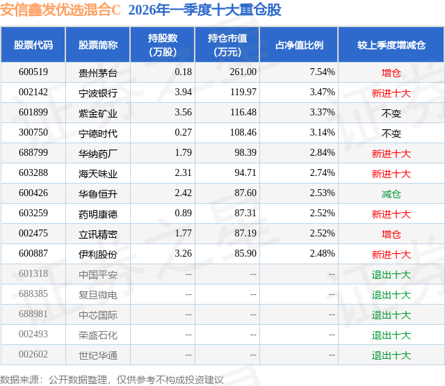 证券之星消息,日前安信鑫发优选混合C基金公布一季报,2026年一季度最新规模0.03亿元,季度净值涨幅为-0.51%。